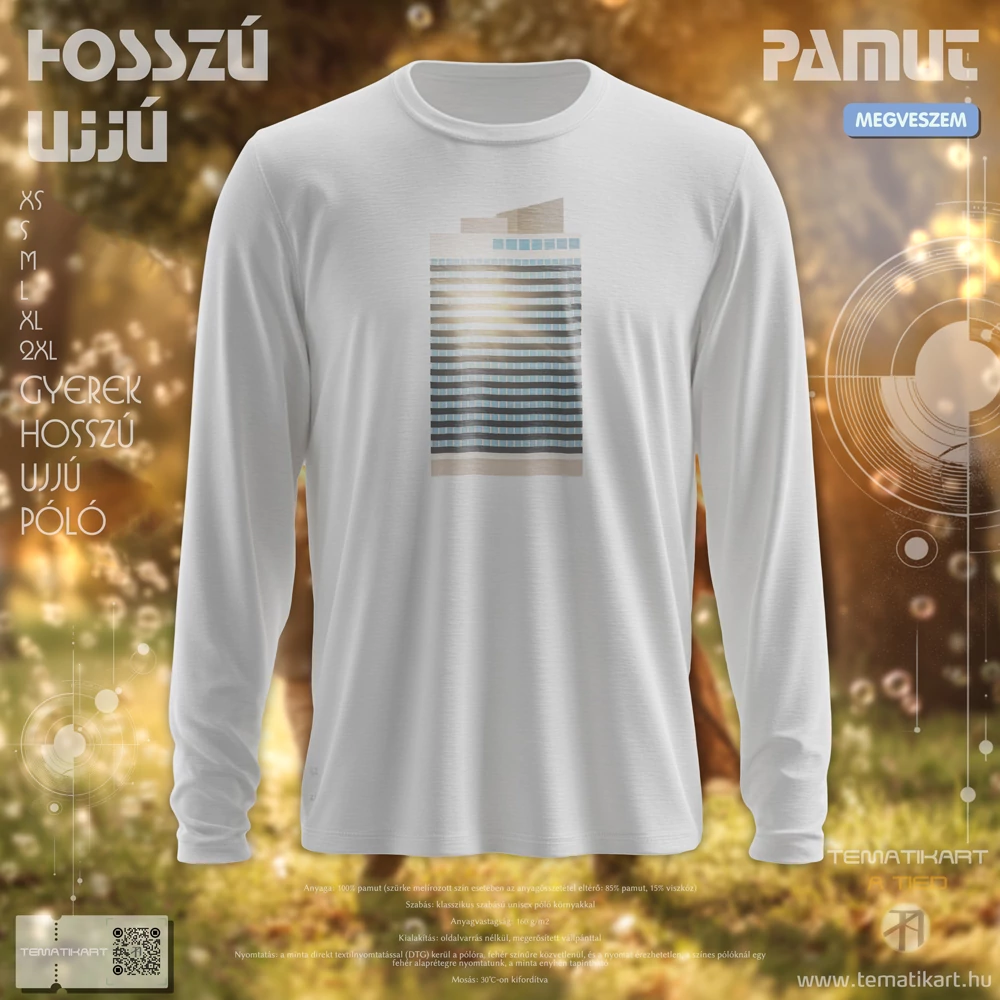 • Nyomtatás: a minta direkt textilnyomtatással (DTG) kerül a pólóra, fehér színűre közvetlenül, és a nyomat érezhetetlen, a színes pólóknál egy fehér alaprétegre nyomtatunk, a minta enyhén tapintható