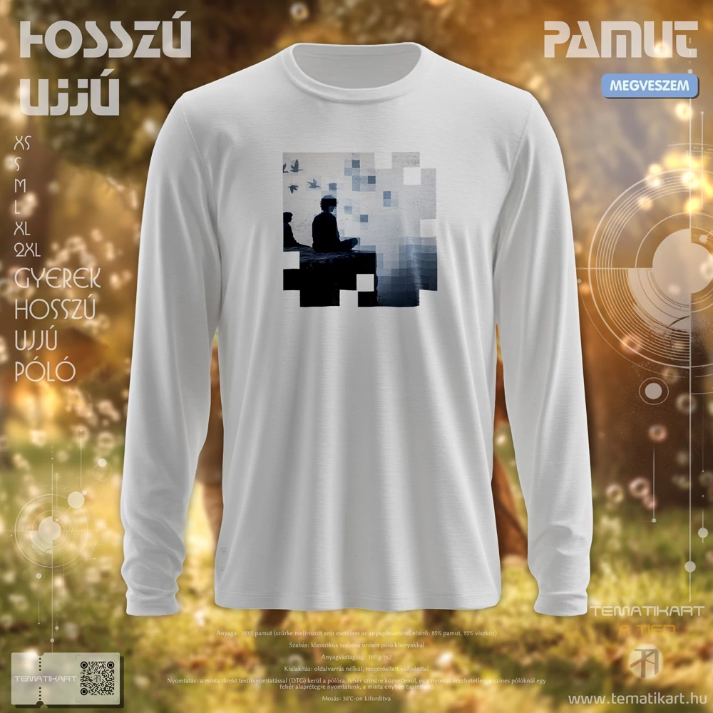 - Nyomtatás: a minta direkt textilnyomtatással (DTG) kerül a pólóra, fehér színűre közvetlenül, és a nyomat érezhetetlen, a színes pólóknál egy fehér alaprétegre nyomtatunk, a minta enyhén tapintható